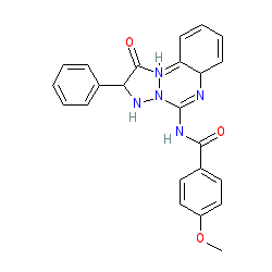 | SMILES | COc1ccc(C(=O)Nc2nc3ccccc3n3c(=O)c(-c4ccccc4)nn23)cc1 |