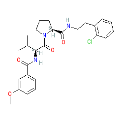 | SMILES | COc1cccc(C(=O)N[C@H](C(=O)N2CCC[C@H]2C(=O)NCCc2ccccc2Cl)C(C)C)c1 |