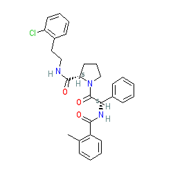 | SMILES | Cc1ccccc1C(=O)N[C@H](C(=O)N1CCC[C@H]1C(=O)NCCc1ccccc1Cl)c1ccccc1 |