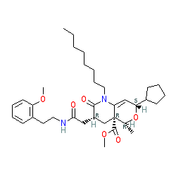 | SMILES | CCCCCCCCN1C(=O)[C@@H](CC(=O)NCCc2ccccc2OC)C[C@@]2(C(=O)OC)C1=C[C@H](C1CCCC1)O[C@@H]2C |