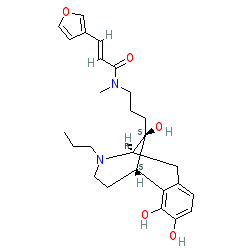 | SMILES | CCCN1CC[C@H]2c3c(ccc(O)c3O)C[C@@H]1[C@]2(O)CCCN(C)C(=O)/C=C/c1ccoc1 |