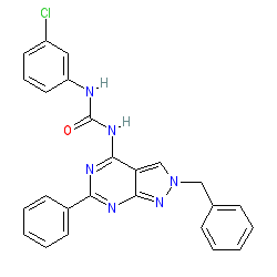 | SMILES | O=C(Nc1cccc(Cl)c1)Nc1nc(-c2ccccc2)nc2nn(Cc3ccccc3)cc12 |