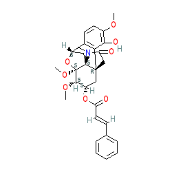 | SMILES | COc1ccc2c(c1O)[C@@]13CC(=O)N(C)[C@@]14C[C@@H]2O[C@]4(OC)[C@@H](OC)[C@@H](OC(=O)/C=C/c1ccccc1)C3 |