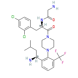 | SMILES | CC(C)C[C@H](N)c1cccc(C(F)(F)F)c1N1CCN(C(=O)[C@@H](Cc2ccc(Cl)cc2Cl)NC(=O)CN)CC1 |