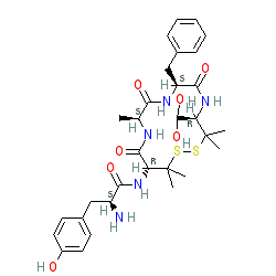 | SMILES | C[C@@H]1NC(=O)[C@@H](NC(=O)[C@@H](N)Cc2ccc(O)cc2)C(C)(C)SSC(C)(C)[C@@H](C(O)O)NC(=O)[C@H](Cc2ccccc2)NC1=O |