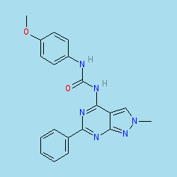 | SMILES | COc1ccc(NC(=O)Nc2nc(-c3ccccc3)nc3nn(C)cc23)cc1 |