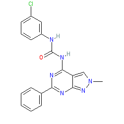 | SMILES | Cn1cc2c(NC(=O)Nc3cccc(Cl)c3)nc(-c3ccccc3)nc2n1 |