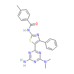| SMILES | Cc1ccc(C(=O)Nc2nc(-c3ccccc3)c(-c3nc(N)nc(N(C)C)n3)s2)cc1 |