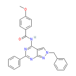 | SMILES | COc1ccc(C(=O)Nc2nc(-c3ccccc3)nc3nn(Cc4ccccc4)cc23)cc1 |