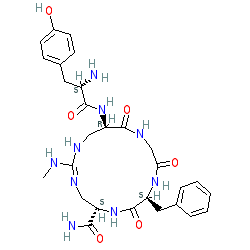 | SMILES | CN/C1=N/C[C@@H](C(N)=O)NC(=O)[C@H](Cc2ccccc2)NC(=O)CNC(=O)[C@H](NC(=O)[C@@H](N)Cc2ccc(O)cc2)CN1 |