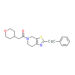 | SMILES | O=C(CC1CCOCC1)N1CCc2nc(C#Cc3ccccc3)sc2C1 |