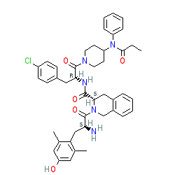 | SMILES | CCC(=O)N(c1ccccc1)C1CCN(C(=O)[C@@H](Cc2ccc(Cl)cc2)NC(=O)[C@@H]2Cc3ccccc3CN2C(=O)[C@@H](N)Cc2c(C)cc(O)cc2C)CC1 |
