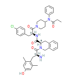 | SMILES | CCC(=O)N(c1ccccc1)C1CCN(C(=O)[C@H](Cc2ccc(Cl)cc2)NC(=O)[C@H]2Cc3ccccc3CN2C(=O)[C@@H](N)Cc2c(C)cc(O)cc2C)CC1 |