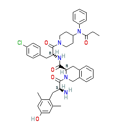 | SMILES | CCC(=O)N(c1ccccc1)C1CCN(C(=O)[C@@H](Cc2ccc(Cl)cc2)NC(=O)[C@H]2Cc3ccccc3CN2C(=O)[C@@H](N)Cc2c(C)cc(O)cc2C)CC1 |