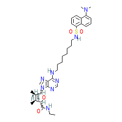 | SMILES | CCNC(=O)[C@H]1O[C@@H](n2cnc3c(NCCCCCCCCNS(=O)(=O)c4cccc5c(N(C)C)cccc45)ncnc32)[C@H](C)[C@@H]1C |