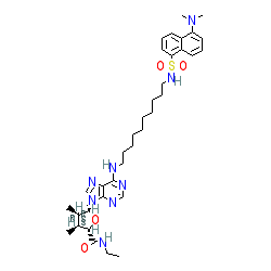 | SMILES | CCNC(=O)[C@H]1O[C@@H](n2cnc3c(NCCCCCCCCCCNS(=O)(=O)c4cccc5c(N(C)C)cccc45)ncnc32)[C@H](C)[C@@H]1C |