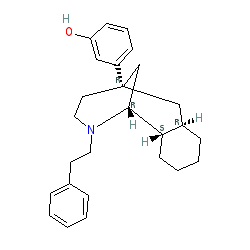 | SMILES | Oc1cccc([C@]23CCN(CCc4ccccc4)[C@H](C2)[C@H]2CCCC[C@@H]2C3)c1 |