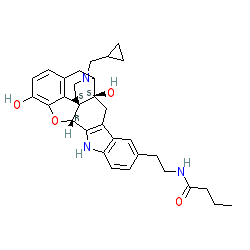 | SMILES | CCCC(=O)NCCc1ccc2[nH]c3c(c2c1)C[C@@]1(O)C2Cc4ccc(O)c5c4[C@@]1(CCN2CC1CC1)[C@H]3O5 |