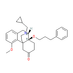 | SMILES | COc1cccc2c1C13CCN(CC4CC4)[C@H](C2)[C@]1(OCCCc1ccccc1)CCC(=O)C3 |