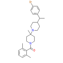 | SMILES | Cc1cccc(C)c1C(=O)N1CCC(C)(N2CCC(C(C)c3ccc(Br)cc3)CC2)CC1 |