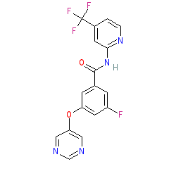 | SMILES | O=C(Nc1cc(C(F)(F)F)ccn1)c1cc(F)cc(Oc2cncnc2)c1 |