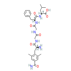 | SMILES | Cc1cc(C(N)=O)cc(C)c1C[C@H](N)C(=O)NCC(=O)NCC(=O)N[C@@H](Cc1ccccc1)C(=O)N[C@@H](CC(C)C)C(=O)O |