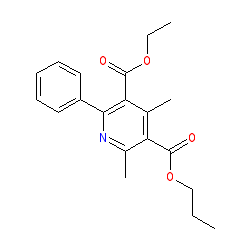 | SMILES | CCCOC(=O)c1c(C)nc(-c2ccccc2)c(C(=O)OCC)c1C |