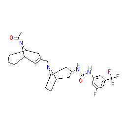 | SMILES | CC(=O)N1C2C=C(CN3C4CCC3CC(NC(=O)Nc3cc(F)cc(C(F)(F)F)c3)C4)CC1CCC2 |