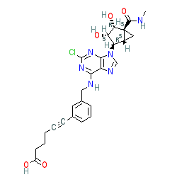 | SMILES | CNC(=O)[C@@]12C[C@@H]1[C@@H](n1cnc3c(NCc4cccc(C#CCCCC(=O)O)c4)nc(Cl)nc31)[C@H](O)[C@@H]2O |