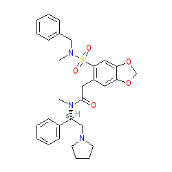 | SMILES | CN(C(=O)Cc1cc2c(cc1S(=O)(=O)N(C)Cc1ccccc1)OCO2)[C@H](CN1CCCC1)c1ccccc1 |