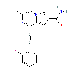 | SMILES | Cc1cn2cc(C(N)=O)cc2c(C#Cc2ccccc2F)n1 |