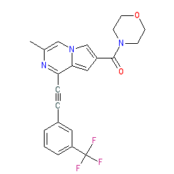 | SMILES | Cc1cn2cc(C(=O)N3CCOCC3)cc2c(C#Cc2cccc(C(F)(F)F)c2)n1 |