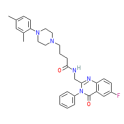 | SMILES | Cc1ccc(N2CCN(CCCC(=O)NCc3nc4ccc(F)cc4c(=O)n3-c3ccccc3)CC2)c(C)c1 |