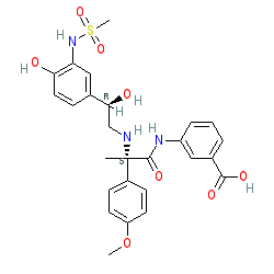 | SMILES | COc1ccc([C@](C)(NC[C@H](O)c2ccc(O)c(NS(C)(=O)=O)c2)C(=O)Nc2cccc(C(=O)O)c2)cc1 |