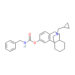| SMILES | O=C(NCc1ccccc1)Oc1ccc2c(c1)C13CCCCC1C(C2)N(CC1CC1)CC3 |