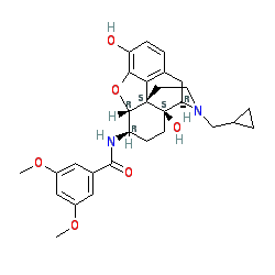 | SMILES | COc1cc(OC)cc(C(=O)N[C@@H]2CC[C@@]3(O)[C@H]4Cc5ccc(O)c6c5[C@@]3(CCN4CC3CC3)[C@H]2O6)c1 |