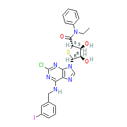 | SMILES | CCN(C(=O)[C@H]1S[C@@H](n2cnc3c(NCc4cccc(I)c4)nc(Cl)nc32)[C@H](O)[C@@H]1O)c1ccccc1 |