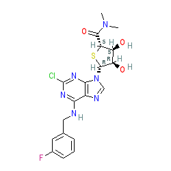| SMILES | CN(C)C(=O)[C@H]1S[C@@H](n2cnc3c(NCc4cccc(F)c4)nc(Cl)nc32)[C@H](O)[C@@H]1O |