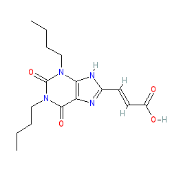 | SMILES | CCCCn1c(=O)c2nc(/C=C/C(=O)O)[nH]c2n(CCCC)c1=O |