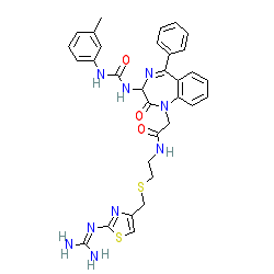 | SMILES | Cc1cccc(NC(=O)NC2N=C(c3ccccc3)c3ccccc3N(CC(=O)NCCSCc3csc(N=C(N)N)n3)C2=O)c1 |